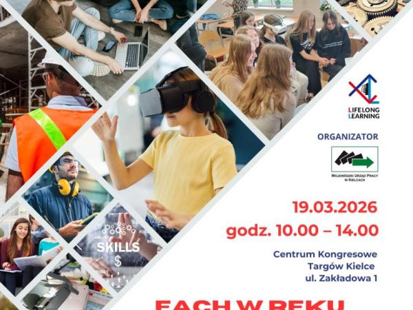 Co dalej ośmoklasisto? Wojewódzki Urząd Pracy w Kielcach wraz z Kuratorium Oświaty w Kielcach, Świętokrzyskie Centrum Doskonalenia Nauczycieli w Kielcach oraz Miasto Kielce zapraszają na kolejną edycję wydarzenia ,,𝐅𝐚𝐜𝐡 𝐰 𝐫ę𝐤𝐮 - 𝐭𝐨 𝐬𝐢ę 𝐨𝐩ł𝐚𝐜𝐚”.Kiedy? 19 marca 2026 roku godzina 10.00-14.00 Gdzie? TAR...